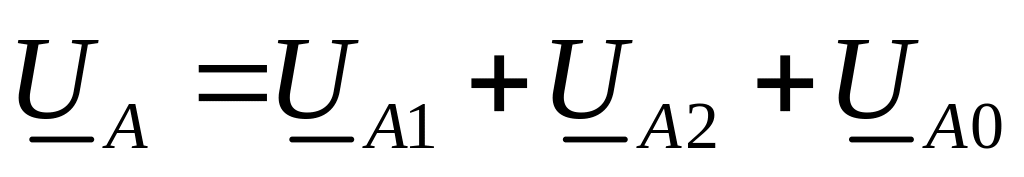 Вектора исходной несимметричной системы определяются по принципу наложения как геометрические суммы соответствующих векторов симметричных составляющих: