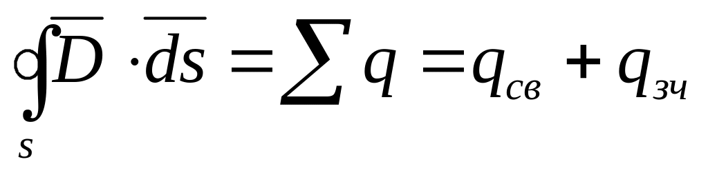 При увеличении заряда внутри объема q=qсв+qзч будет усиливаться электрическое поле на поверхности S. По теореме Гаусса:
