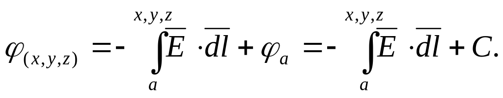 Независимость напряжения между двумя точками от выбора пути интегрирования позволяет характеризовать электрическое поле некоторой математической функцией (x,y,z), называемой потенциалом, разность значений которой в рассматриваемых точках численно равна напряжению между ними:
