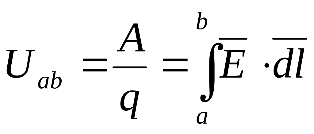 Электрическим напряжением называется физическая величина, равная отношению работы по перемещению заряда из одной точки (а) в другую (b) к величине этого заряда: