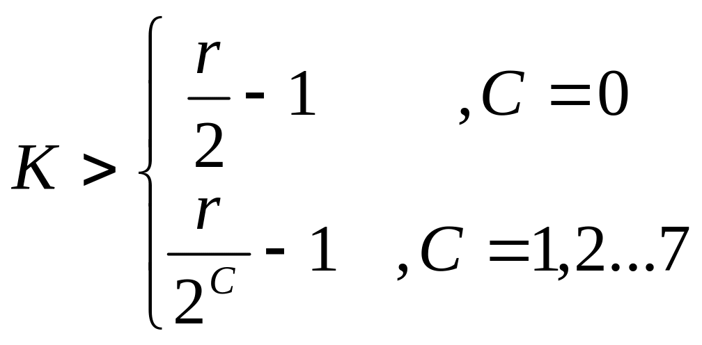 Номер уровня квантования K определяется как наименьшее целое из С, для которого