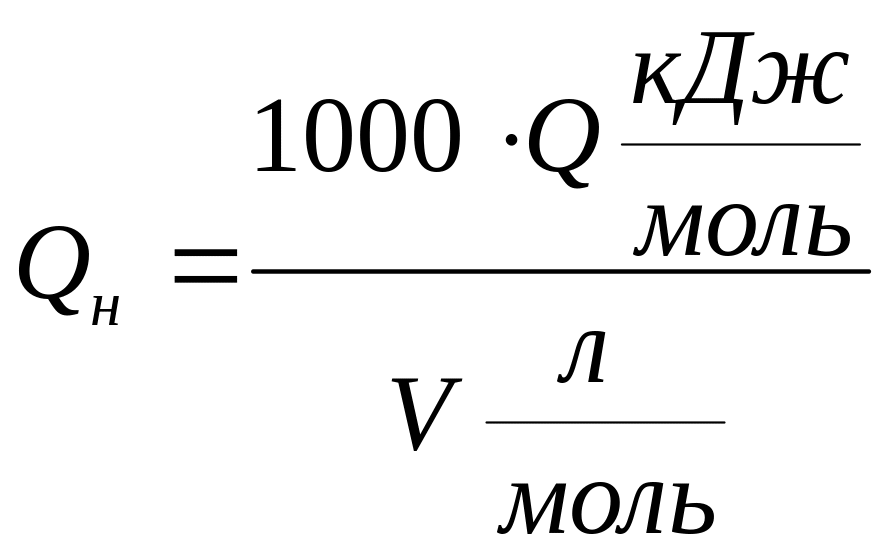 Определяем низшую теплоту сгорания переводом Н (кДж/моль) в Qн (кДж/м3).