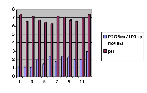 Для характеристики почв и почво-грунтов весомое значение имеют такие показатели как содержание подвижных форм фосфора и актуальная кислотность (рН). Особенно это заметно в городских почвах, почвах придорожных полос. Основное поступление фосфора в почвы города происходит путем аэрогенного загрязнения, в частности, выхлопных газов автотранспорта.