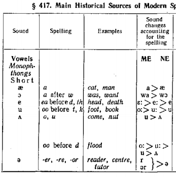 In the 18th c. the sound changes slowed down. Standard pronunciation (later known as RP — Received Pronunciation) and standard spelling were firmly established, and the gap between the spoken and written form of the word was perpetuated.