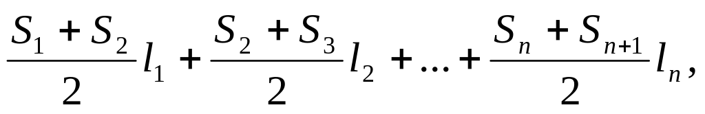 где S1, S2,...Sn — площади профильных сечений отвала, м.2;