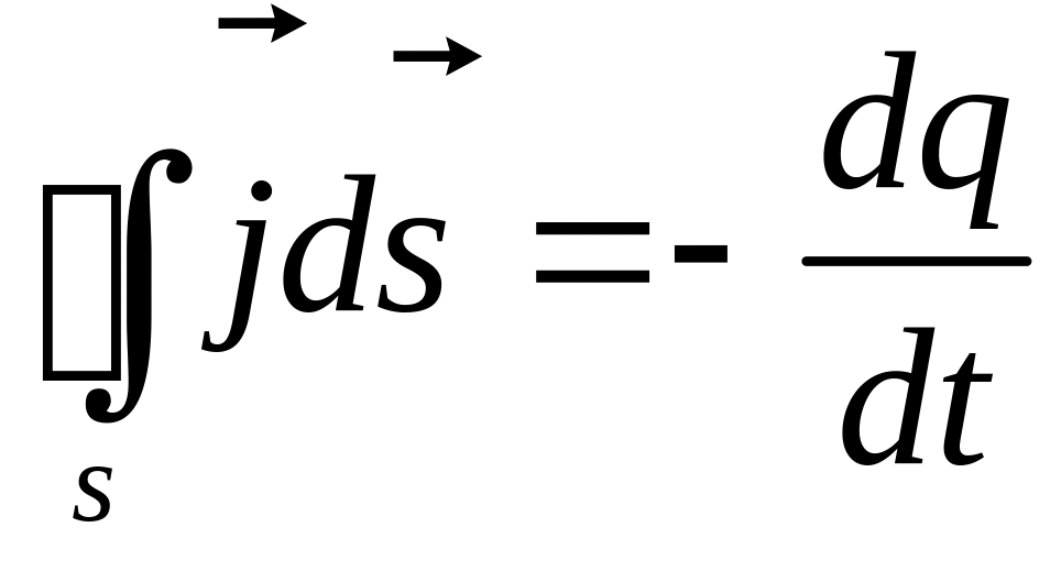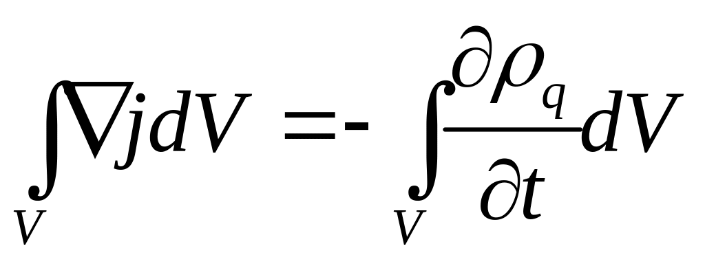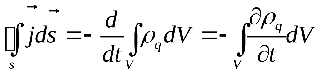 Можно утверждать, что заряд, выходящий в единицу времени из объема V , ограниченного поверхностью S, равен скорости убывания заряда, содержащегося в этом объёме: