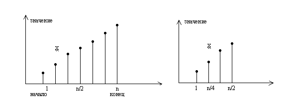 Выполнение условия L=R еще не свидетельствует о нахождении требуемого элемента. Здесь требуется дополнительная проверка. Также необходимо учитывать, что элемент a[R] в сравнениях никогда не участвует. Следовательно, и здесь необходима дополнительная проверка на равенство a[R]=x. Следует отметить, что эти проверки выполняются однократно.