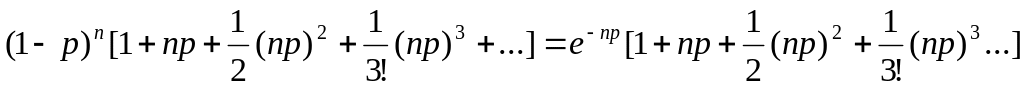 (1 – p)n ≈ e–np, последнее выражение можно переписать в виде:
