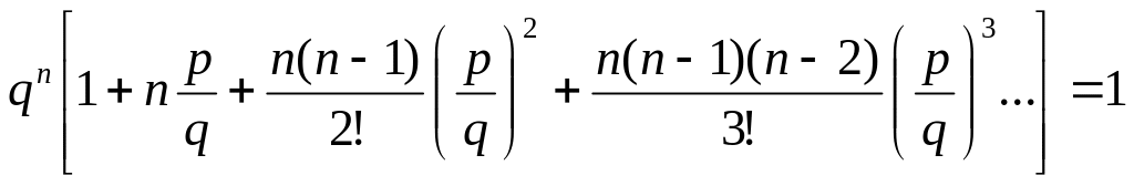 Рассмотрим видоизмененное биноминальное распределение, широко используемое в биологии. Итак, если вероятность данного события при однократном испытании равна р, то вероятности того, что оно произойдет 0, 1, 2, 3, и т. д. раз в ряду n последовательных испытаний, задаются соответствующими членами ряда: