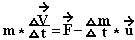 где m - масса ракеты, V - изменение скорости ракеты, m - масса выброшенных газов, u - скорость истечения газов.