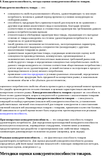 - •8. Конкурентоспособность, методы оценки конкурентоспособности товаров.