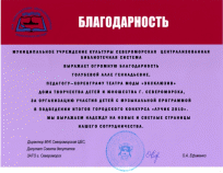Всероссийский фестиваль педагогических идей «Открытый урок - 2010». Номинация «Внеклассная работа» и «Преподавание в начальной школе». Публикация методического материала «Композиция танца на начальном этапе обучения». |