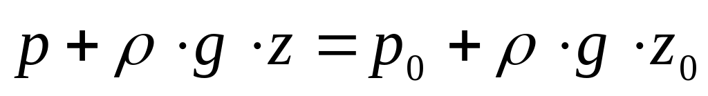 Основное уравнение гидростатики представляет собой частный случай закона сохранения энергии и может быть сформулирован и так: общая удельная потенциальная энергия (удельная потенциальная энергия положения z и удельная потенциальная энергия давления ) во всех точках покоящейся жидкости есть величина постоянная.