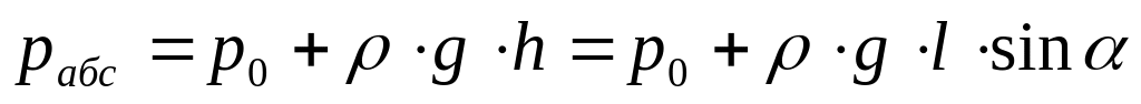 Как и в предыдущем случае при l = 0 и h = 0 абсолютное давление получает значение pабс = p0, а при l = L и h = H