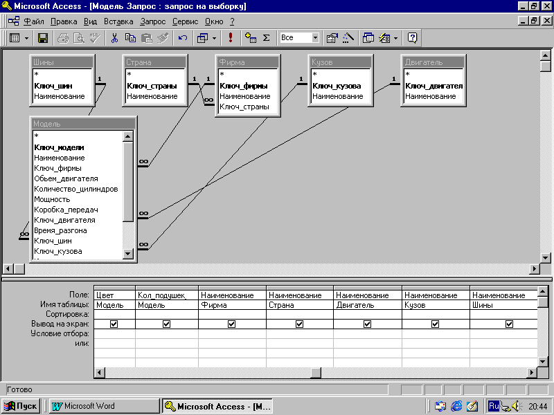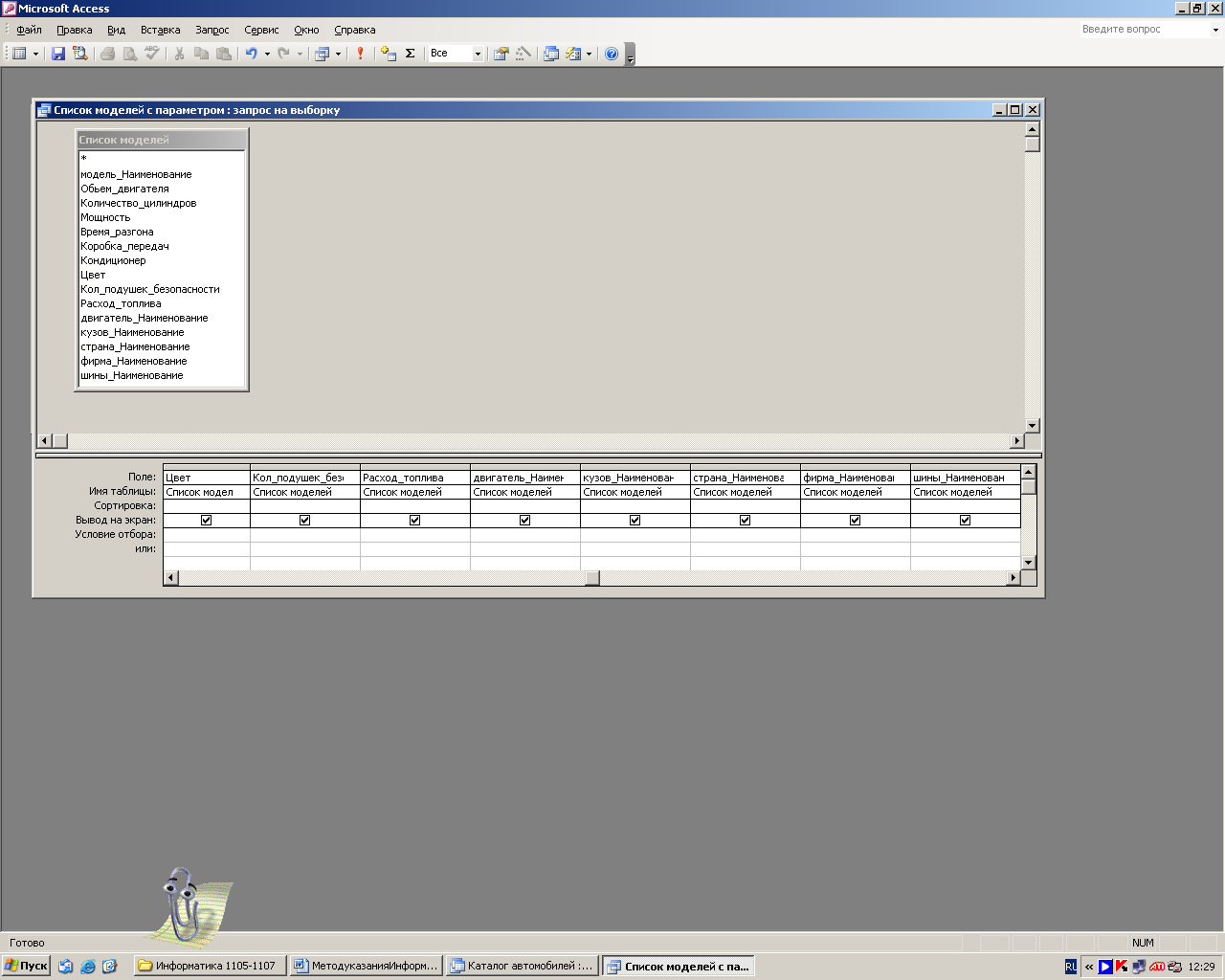 ыполните команду Далее. Выберите создание подробного отчета и задайте имя запроса - Список моделей. Вид созданного запроса Список моделей в режиме Конструктора запросов приведен на рисунке 30.