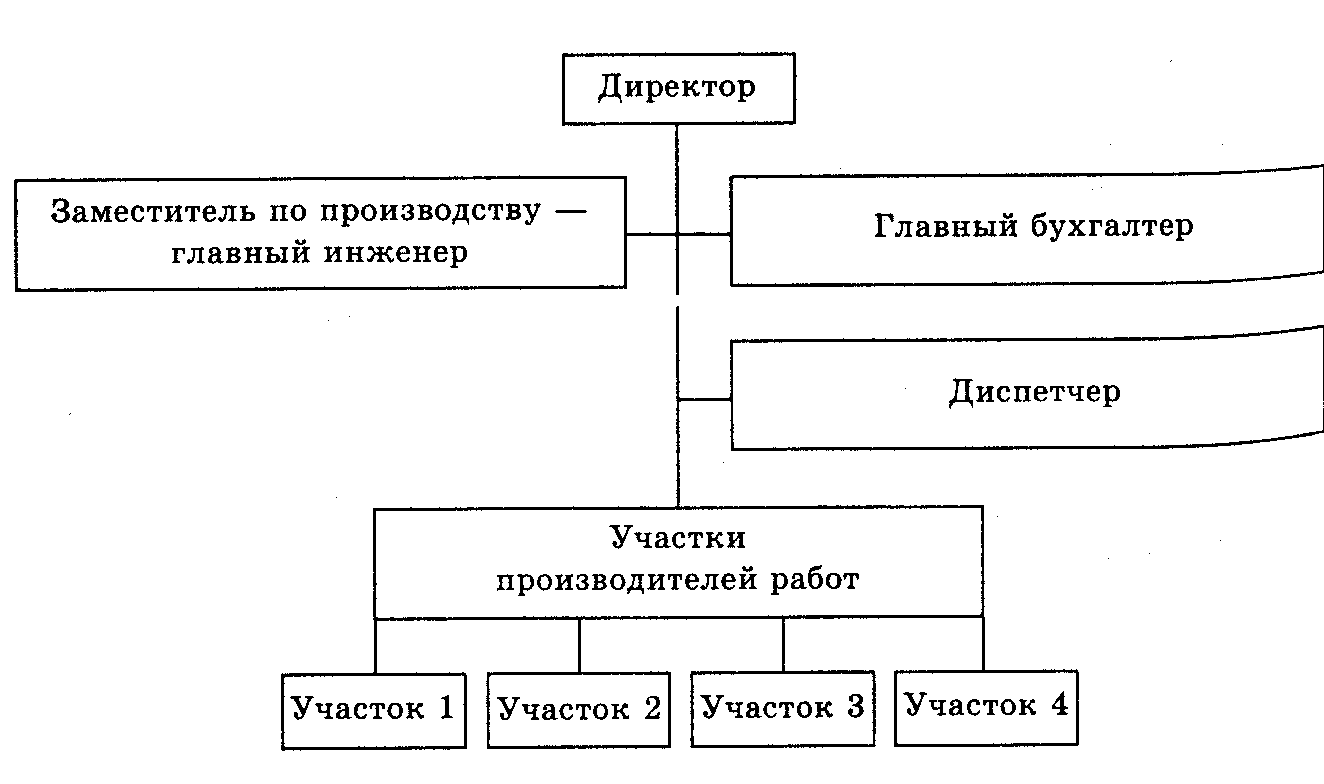 Рис. 15.3. Структура управления малым строительным предприятием (организацией, фирмой) с линейными производителями в виде участков производителей работ