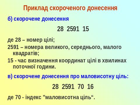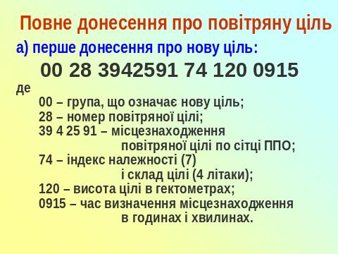 1. Видача радіолокаційної інформації з командного пункту окремої радіолокаційної роти в координатах сітки ППО. Зміст донесення про повітряну ціль.