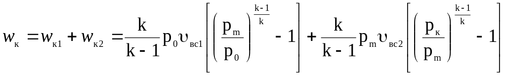Проміжний тиск може бути визначений за умови найменшої сумарної питомої роботи компресорів. Для випадку ізоентропного стискання в обох ступінях сумарна питома робота може бути знайдена за виразом