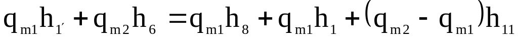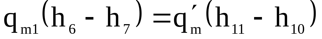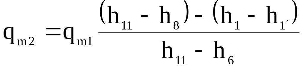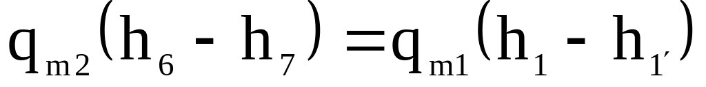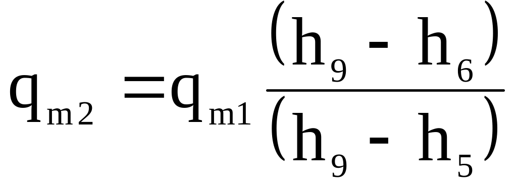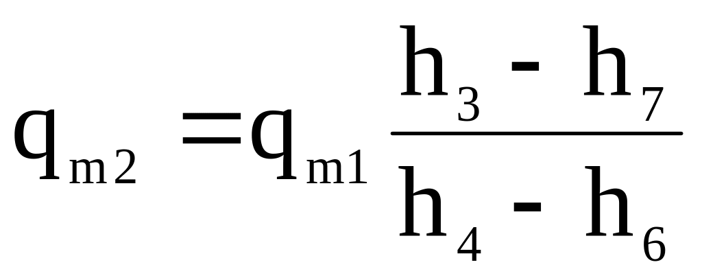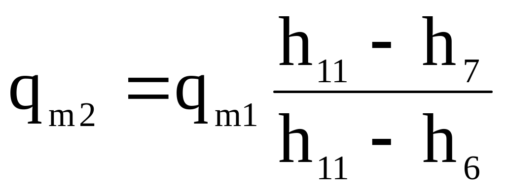 Масову витрату холодильного агента через компресор першого ступеня знаходять за рівняннями (5.66)-(5.67). Масову витрату холодильного агента через компресор другого ступеня визначають скориставшись тепловим балансом системи, яка складається з теплообмінників (РТО та ТО) та допоміжного дросельного вентиля РВ1: