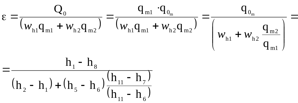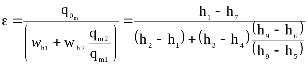 У циклах двохступеневих холодильних машин проміжний тиск рm впливає на економічність. Існує декілька методів визначення проміжного тиску: за мінімальною затраченою роботою, за максимальним холодильним коефіцієнтом, за мінімальною сумарною об’ємною продуктивністю компресорів та ін. Розглянемо деякі з них.