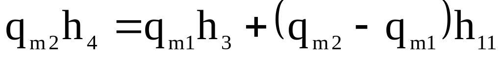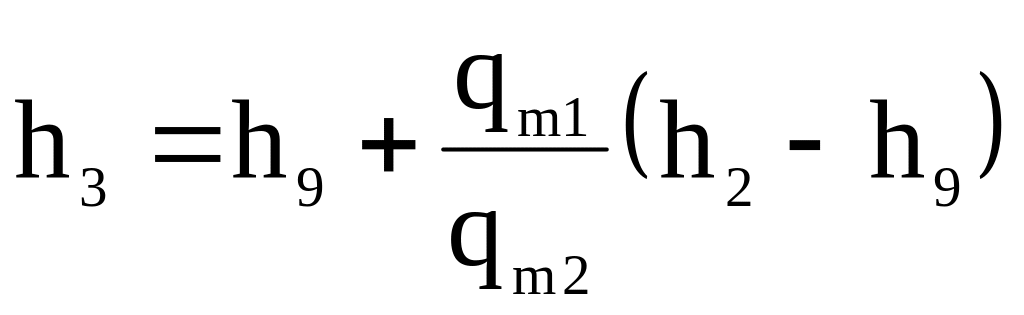 Стан робочої речовини у точці 3 знаходять склавши тепловий баланс змішування