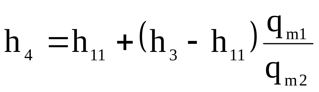Стан речовини точці 4 розраховують за рівнянням змішування: