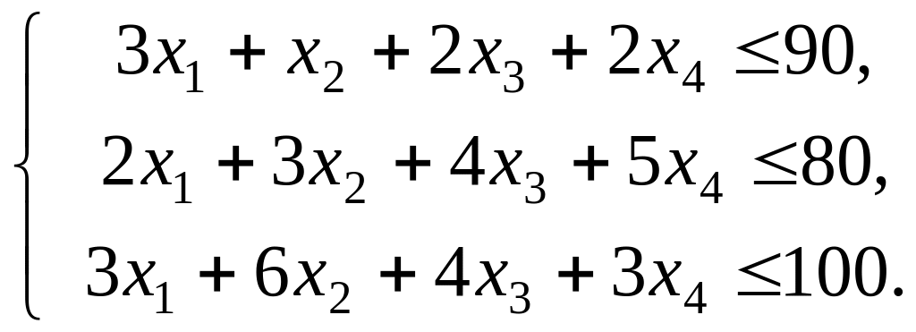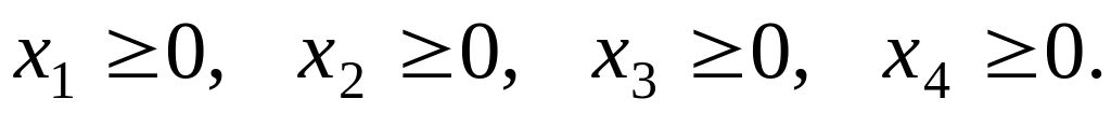 Переменные х1, х2, х3, х4 должны удовлетворять ограничениям, накладываемым на расход имеющихся в распоряжении предприятия ресурсов сырья. Эти ограничения выражаются неравенствами: