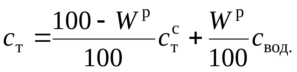 где ст удельная теплоемкость рабочей массы твердого и жидкого топлива, кДж/(кг · К), которая определяется по формуле