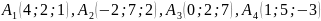Найти: 1) длины ребер и ; 2) угол между ребрами и ; 3) угол между ребром и гранью ; 4) площадь грани ; 5) объем пирамиды ; 6) канонические уравнения прямой ; 7) уравнение плоскости ; 8) уравнение высоты, опущенной из вершины на грань и длину этой высоты. Для угловых величин кроме точного значения дать приближенное значение с точностью до (до одной угловой секунды). Сделать схематический рисунок с указанием всех рассматриваемых векторов.