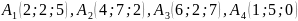 Найти: 1) длины ребер и ; 2) угол между ребрами и ; 3) угол между ребром и гранью ; 4) площадь грани ; 5) объем пирамиды ; 6) канонические уравнения прямой ; 7) уравнение плоскости ; 8) уравнение высоты, опущенной из вершины на грань и длину этой высоты. Для угловых величин кроме точного значения дать приближенное значение с точностью до (до одной угловой секунды). Сделать схематический рисунок с указанием всех рассматриваемых векторов.