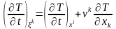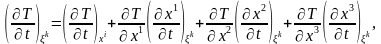 Егер температураның таралуы Эйлер айнымалылары арқылы берілсе, онда бұл туындыны есептегенде Лагранж айнымалыларына көшіп