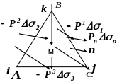 Ал керісінше болса, онда әсер және қарсы әсер заңы бойынша, алып тасталған бөлігіне эквивалентті сыртқы жақтан түсірілетін күш тең болады. Массасы шексіз аз кішкентай триэдрді абсолют қатты дене ретінде алып, қарастырылып отырған жүйенің инерция центрінің қозғалыс теңдеуін жазайық