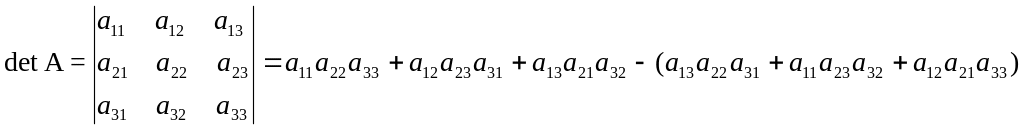 Определитель квадратной матрицы третьего порядка можно вычислить по правилу треугольников: