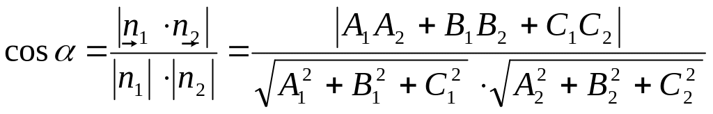 Косинус угла между двумя плоскостями, заданными уравнениями