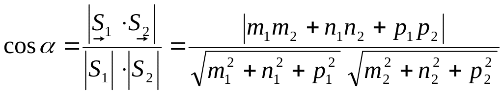 Косинус угла между двумя прямыми вычисляется как косинус угла между направляющими векторами данных прямых:
