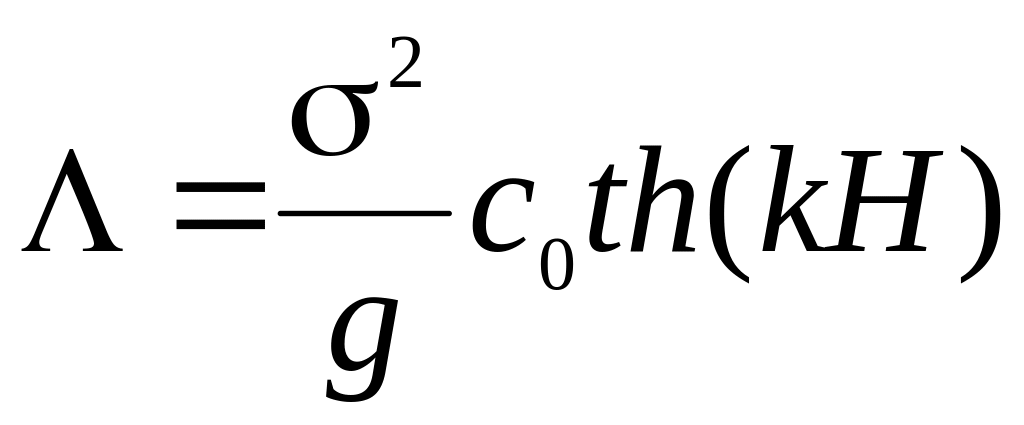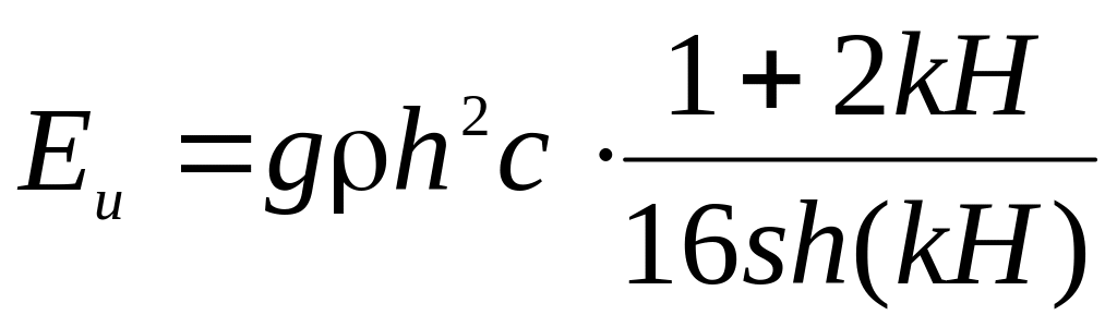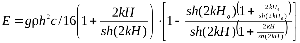 де – щільність; с – швидкість розповсюдження хвилі на дрібній воді; k=2/ – хвильове число; – довжина хвилі.
