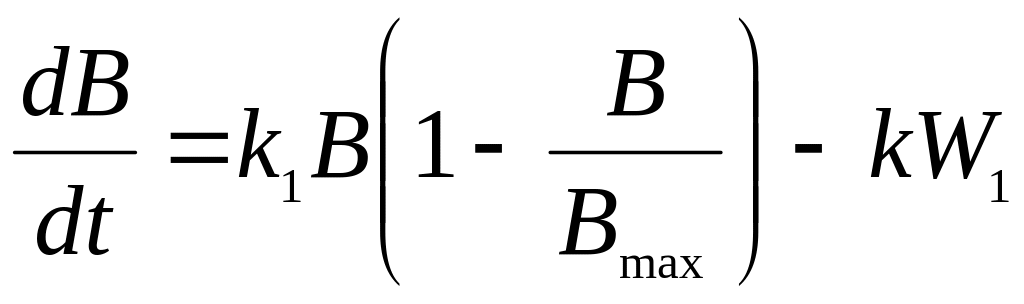саморегульований ріст біомаси донного біоценозу описується відомим логистическим рівнянням.