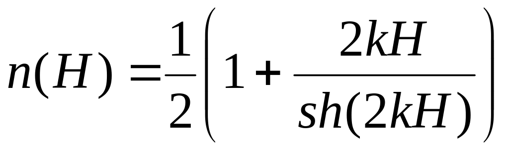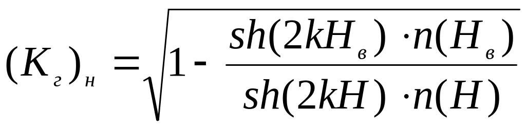 Якщо висота хвилі виміряється на глибині Н між хвилеломом і берегом, то Кг дорівнює [22]