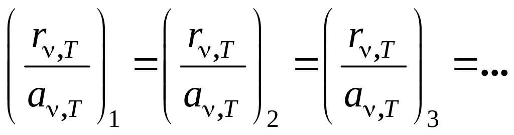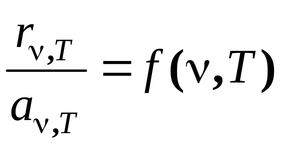– отношение испускательной способности тела к его поглощательной способности не зависит от материала тела и равно испускательной способности абсолютно черного тела, являющейся функцией только температуры и частоты.
