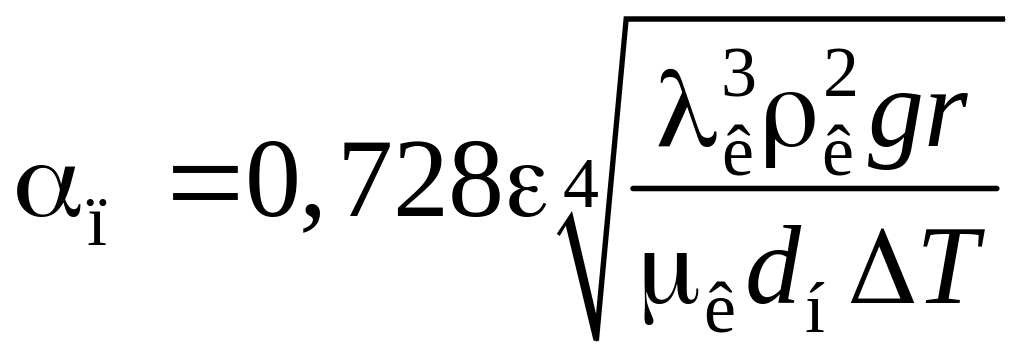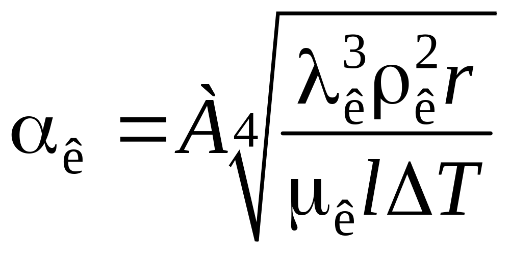 При конденсации насыщенного пара коэффициент теплоотдачи к, Вт/(м2К), обычно рассчитывают по зависимости