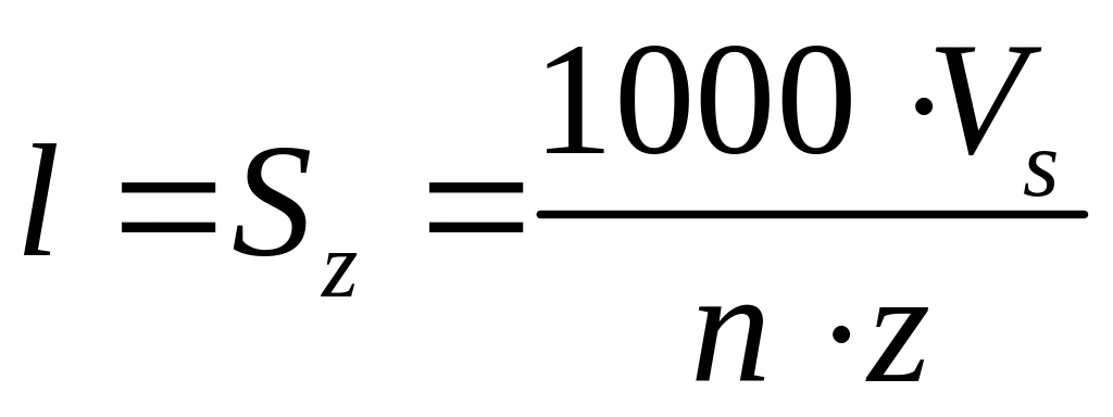 Длина волны равна величине подачи на один нож и может быть вычислена по формуле