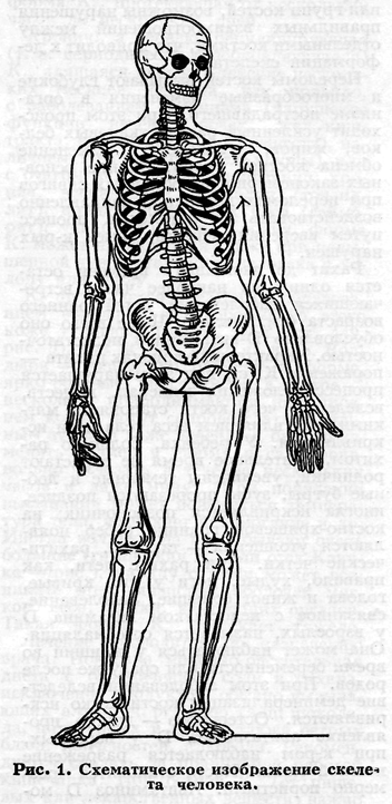 Костная система — опорный остов организма, представляющий совокупность сочленяющихся костей; обусловливает внешний вид и форму тела человека (рис. 1) и позвоночных животных. Кость представляет сложное образование, состоящее из костной ткани (главная масса кости), костного мозга, суставного хряща, нервов и сосудов. Снаружи кости, за исключением суставных поверхностей, покрыты надкостницей. Надкостница — тонкая, крепкая соединительнотканная пленка, богатая сосудами и нервами.