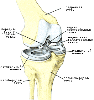 Менисков в коленном суставе два - наружный (латеральный ) и внутренний (медиальный ). Спереди сустава они соединяются поперечной связкой. Наружный мениск более подвижен, чем внутренний, поэтому его травматические повреждения происходят реже. Внутренний мениск менее подвижен и связан с внутренней боковой связкой коленного сустава, поэтому травма часто сочетается с повреждением и этой связки.
