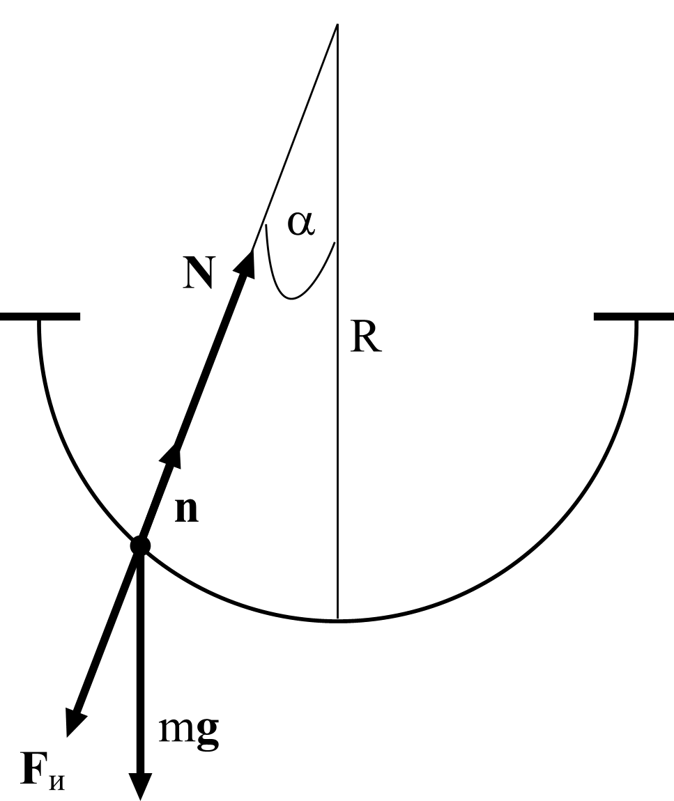 mg + N − m = 0 или mg + N = m . (Проекция на нормаль касательного ускорения все-равно равна нулю, даже, если тело и движется с касательным ускорением).