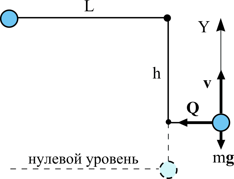 Задача 1. Ведро с водой, привязанное к веревке длиной L, равномерно вращается в вертикальной плоскости. Найти величину vмин наименьшей скорости вращения ведра, при которой в высшей точке вода из него не выливается. Какова величина Т силы натяжения веревки при этой скорости в высшей и низшей точках окружности. Масса воды m. Массой самого ведра пренебречь. Размер ведра много меньше длины веревки.