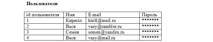 таблица Пользователи удовлетворяет