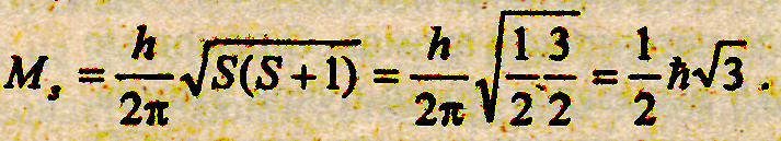 ћ= h/(2π); s =±1/2; - спиновое квантовое число. Собственный момент импульса электрона определяется через спиновое квантовое число s по формуле: