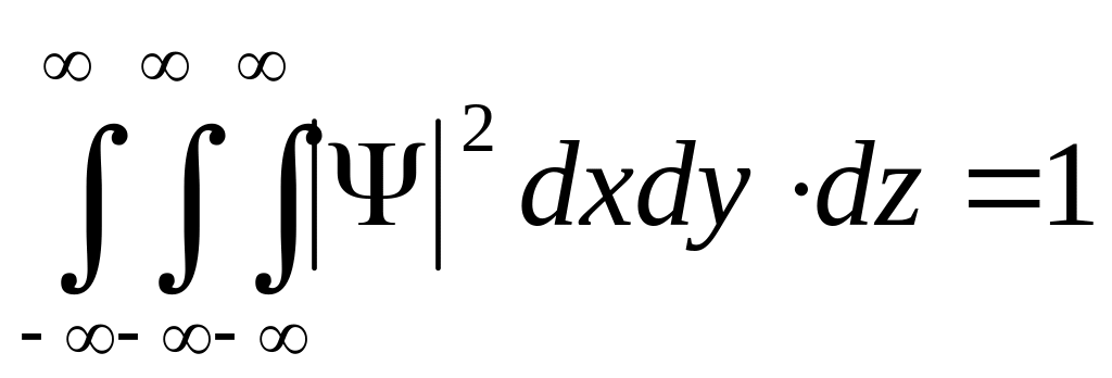 где тройной интеграл вычисляется по всему пространству от - до . Выражение означает, что нахождение частицы в какой - либо точке всего бесконечного пространства есть достоверное событие и его вероятность должна быть равна единице. Выражение называют также условием нормировки волновой функции или условием нормировки вероятностей.