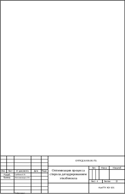 Оптимальная температура дегидрирования этилбензола 580 – 6000С и давление не выше 0,15 МПа. Объемная скорость подачи этилбензола не превышает 0,5 ч-1 [2].