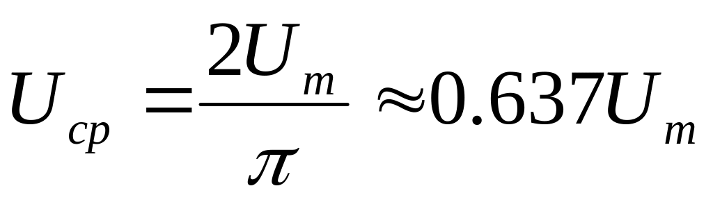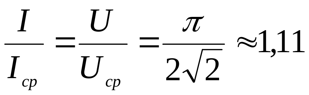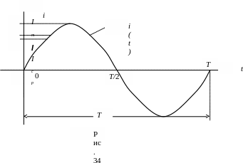 Для синусоидальной функции среднее значение за полный период Т (или за целое число полных периодов) равно нулю, так как площади положительной и отрицательной полуволн этой функции равны. Для переменного синусоидального тока (напряжения) среднее значение определяют за половину периода (Т/2) между двумя нулевыми значениями (рис. 34)